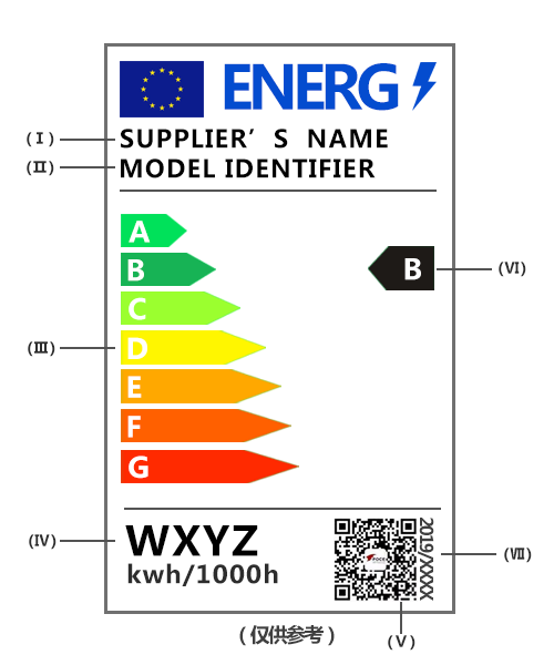 新標(biāo)簽使用從A(最高效)到G(最不高效)的等級,取代從A ++(效率最高)到E(效率最低)的能效等級。提供有關(guān)能耗的信息,以每1000小時(shí)kWh表示。