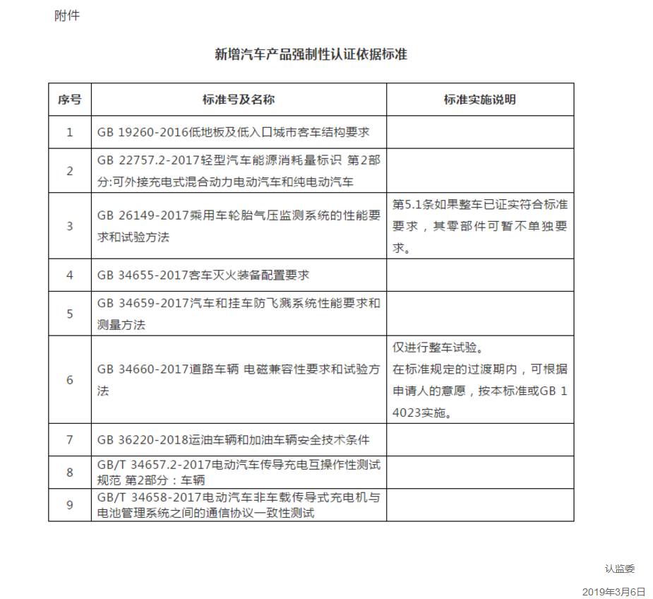 附件:新增汽車產(chǎn)品強制性認證依據(jù)標準