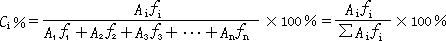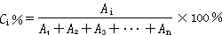 由于組分的量與其峰面積成正比,如果樣品中所有組分都能產(chǎn)生信號,得到相應(yīng)的色譜峰,那么可以用如下歸一化公式計算各組分的含量。