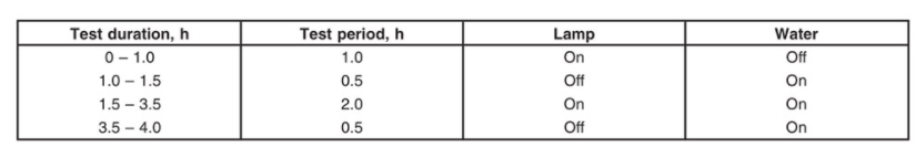1、如果燈具的使用環(huán)境為Wet localtion,則需要做防水測(cè)試,下表為防水測(cè)試的時(shí)間操作列表。