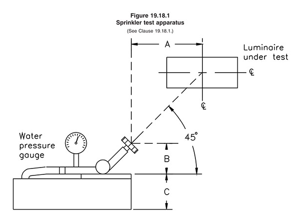 3、如果燈具安裝高度低于1.2m,需要做Sprinkler test和Rain test.(移動(dòng)式燈具做Wet localtion,就需要做Sprinkler test和Rain test)