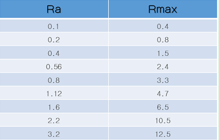 Ra、Rmax的具體關(guān)系還請(qǐng)參考下面的表格:
