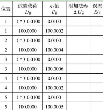 例:現(xiàn)有一臺電子天平,其最大秤量為220g,實(shí)際標(biāo)尺分度值d=0.1mg,檢定標(biāo)尺分度值e=1mg。根據(jù)JJG1033-2006《電子天平檢定規(guī)程》的規(guī)定,應(yīng)該選擇最大秤量220g的1/3,同時(shí)優(yōu)先選擇單個(gè)砝碼。即用100g的標(biāo)準(zhǔn)砝碼檢定天平的偏載(四角)誤差,所測得的有關(guān)數(shù)據(jù)如表1所示。求此電子天平的偏載誤差是多少?天平的偏載(四角)誤差是否合格?