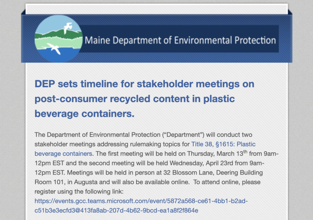 美國緬因州環(huán)境保護(hù)部將于 2025 年 4 月 23 日舉行一次利益相關(guān)者會(huì)議,就《緬因州法規(guī)第38卷第1615節(jié)》的相關(guān)內(nèi)容進(jìn)行討論。此前,緬因州發(fā)布了一項(xiàng)與回收塑料相關(guān)的法案《緬因州法規(guī)第38卷第1615節(jié)》,該法案旨在通過分階段提高塑料飲料容器中消費(fèi)后回收材料(PCR)的比例,推動(dòng)該州循環(huán)經(jīng)濟(jì)和可持續(xù)發(fā)展。以下為該法案的主要內(nèi)容。