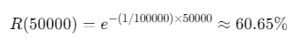 例如,MTBF=10萬小時的服務器,運行5萬小時后的可靠度為: