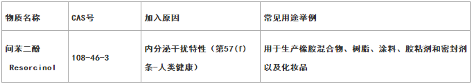 在2020年3月,間苯二酚就曾因其“內(nèi)分泌干擾特性(第57(f)條-人類健康)”被ECHA列入第23批評(píng)議物質(zhì),而在2020年6月公布的SVHC清單,因成員國委員會(huì)未能達(dá)成一致意見,所以沒有將間苯二酚正式納入SVHC清單。此次就其內(nèi)分泌干擾特性,間苯二酚再次成為SVHC評(píng)議物質(zhì),并被提議于2021年第四季度作為第26批列入SVHC清單