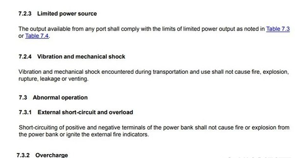 4. 其它有更新或增加的測試要求: 限制功率測試,振動和機(jī)械沖擊測試,元器件和接觸面溫度限制,短路和過載測試,過充電測試等。