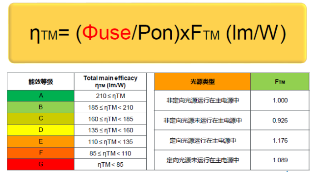 2.標(biāo)簽?zāi)苄У燃売?jì)算:?TM = (Φuse / Pon) X FTM 單位:(lm/W)。