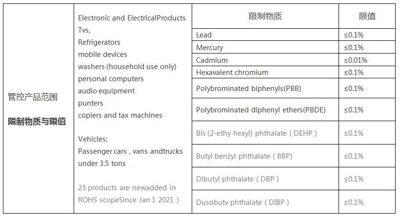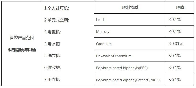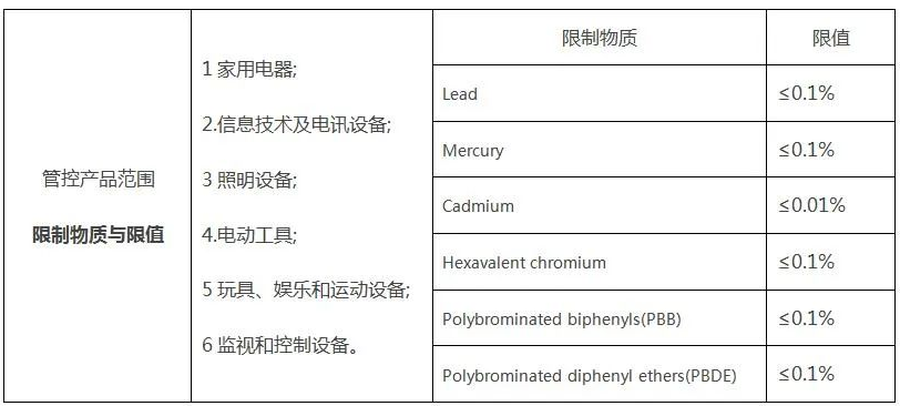 該標準的目的在于消除電子電器產(chǎn)品中的鉛、汞、鎘、六價鉻、多溴聯(lián)苯、多溴二苯醚以及四種鄰苯共10項物質(zhì)。